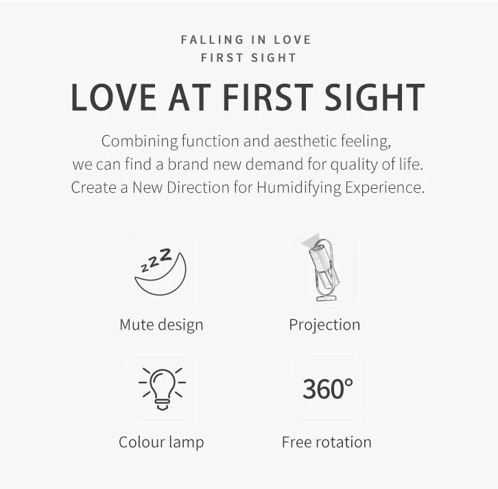The built-in projection night light adds a calming visual glow, transforming any space into a soothing environment. Compact, portable, and USB-powered—your ideal humidifier for comfort, hydration, and peaceful nights.
